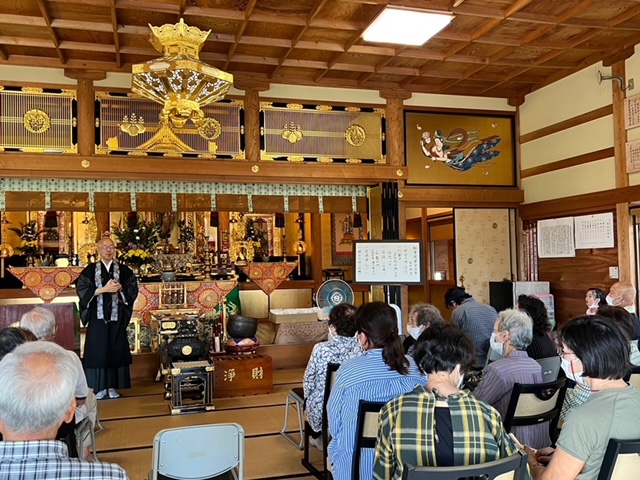 多数の門信徒の方にご聴聞いただき、皆様とご一緒に「正信念仏偈」をお勤めし、その後住職による「第1回仏教入門法話会」を約1時間ほどお話しさせて頂きました。